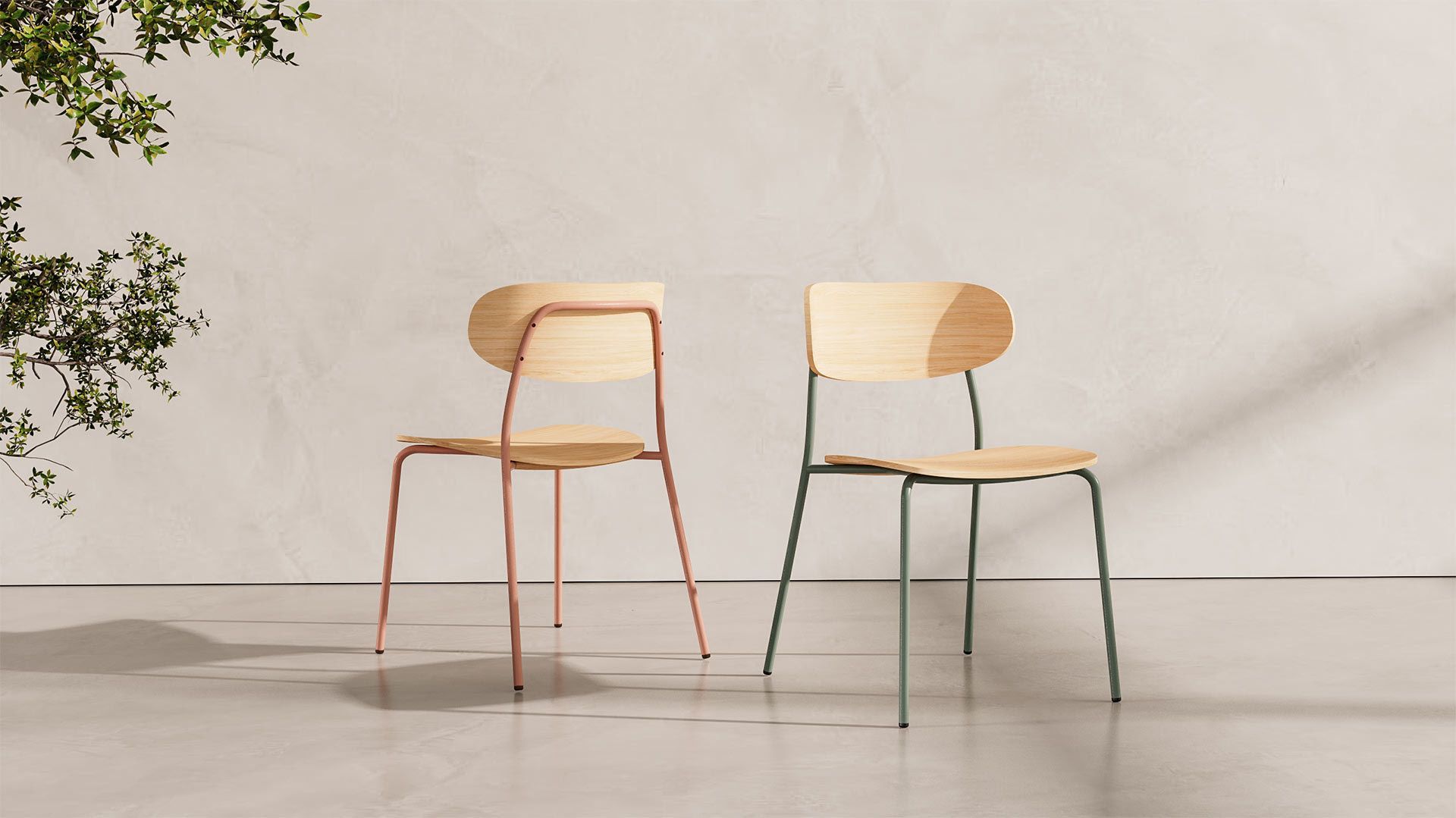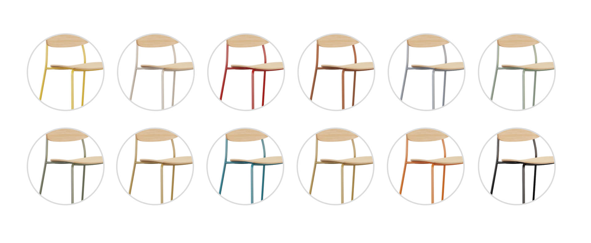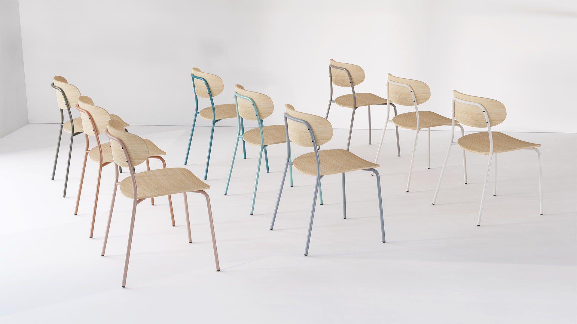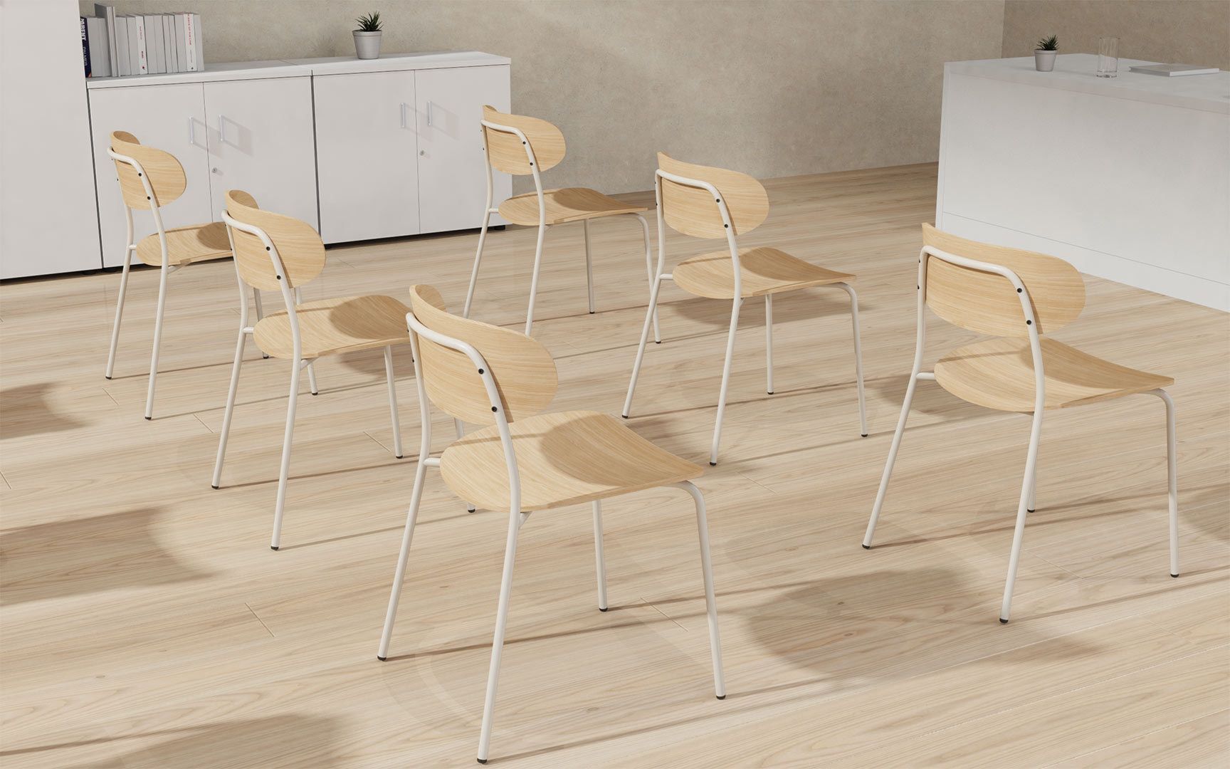 Diseño ergonómico y apilable, en roble o nogal, con una paleta de colores que se adapta a tu estilo.